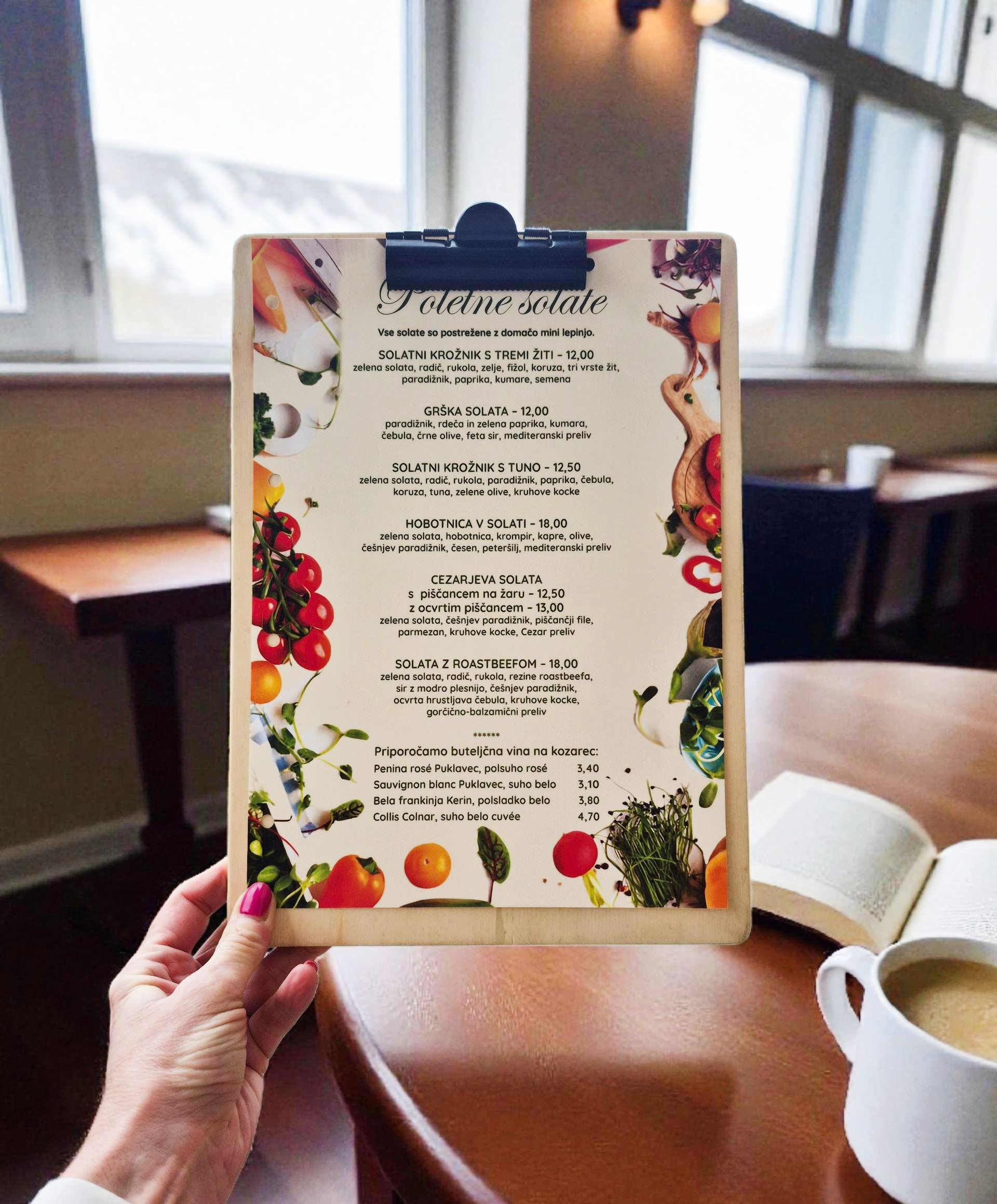 Clip meni A4 je rešitev za lokale, kjer mora biti vse hitro, praktično in urejeno. Gostincem omogoča takojšnjo menjavo jedilnikov, vinskih listov in dnevnih ponudb – preprosto natisnejo A4, ga vstavijo pod sponko in je pripravljeno. Brez vezave, brez plastificiranja, brez dodatnih stroškov pri vsaki spremembi cen ali ponudbe.