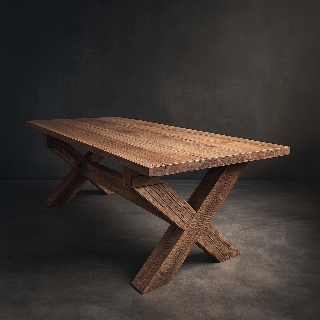 Elegantna, mogočna in popolnoma ročno izdelana. Jedilna miza iz linije FormaWood Origins združuje rustikalno dušo s sodobno zasnovo. Masivna plošča iz starega hrasta in ročno izdelane X-noge tvorijo stabilno konstrukcijo z izrazitim karakterjem.